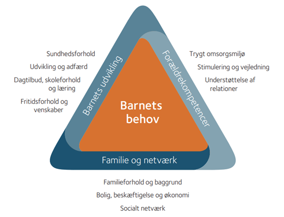 - Familie og netværk: Familieforhold og baggrund, bolig, beskæftigelse og økonomi samt socialt netværk. Siden omfatter de socioøkonomiske og psykosociale forhold, som barnet og familien lever under.
