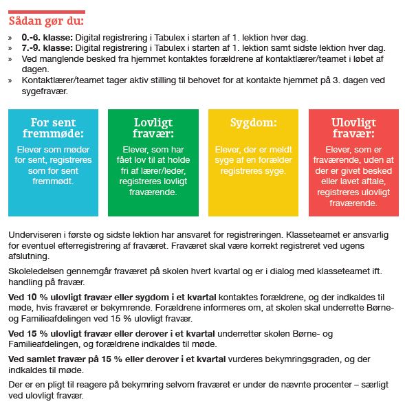 Kilde: Børne- og undervisningsministeriet, Fraværsregler i Folkeskolen